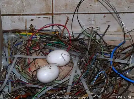 Птица свила гнездо из проволоки (4 фото)